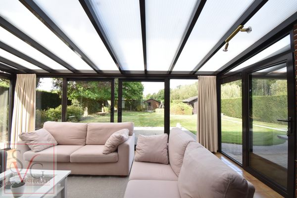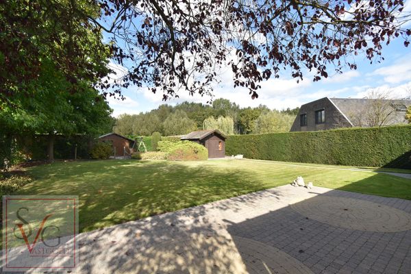 De buitenomgeving is een echte troef: een verzorgde, zonrijke tuin, omgeven door groen, met twee terrassen waarvan één overdekt — ideaal om het hele jaar door te genieten van de prachtige omgeving.