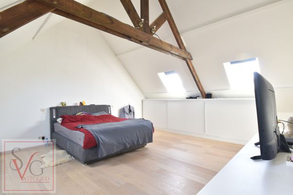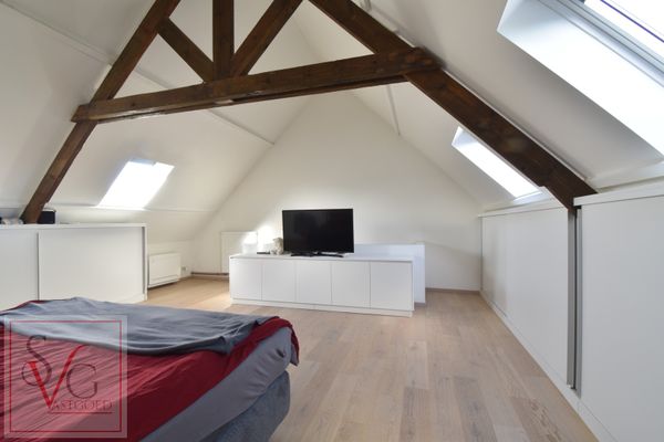 Op de eerste verdieping bevinden zich drie slaapkamers en een badkamer met alle comfort. De zolderverdieping werd ingericht tot een ruime masterbedroom met extra bergruimte en een gevoel van rust en privacy.