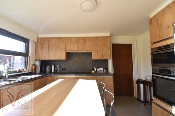 De volledig ingebouwde keuken is voorzien van alle moderne toestellen (inclusief Amerikaanse frigo) en grenst aan de praktische berging. Achteraan geniet je van een zonnige tuin met terras, deels overdekt, en een handige tuinberging. Tevens beschikt de woning over een garage.