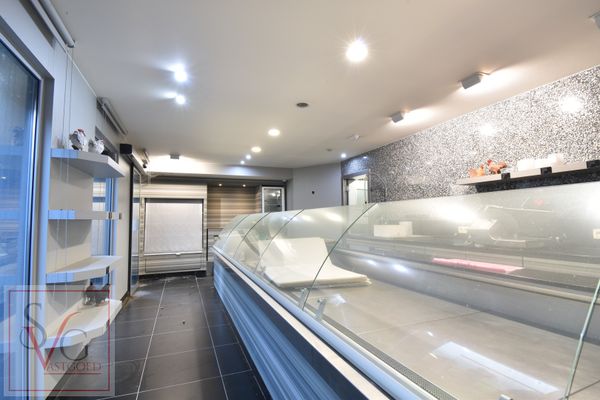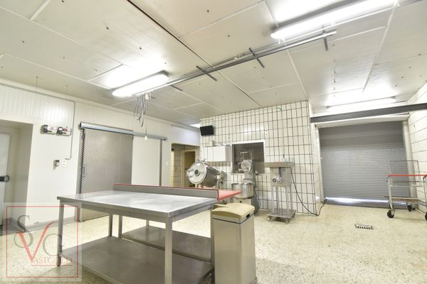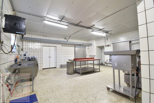 Deze eigendom is geschikt voor meerdere doeleinden! De winkel werd recent volledig vernieuwd (Bossuyt) en beschikt over een zelfbedieningsfrigo. Verder zijn er 3 frigocellen (resp. 32m²/16m²/4m²), een diepvriescel (6m²),een afwasruimte, een groot atelier, bereidingsruimte, bureel en een personeelsruimte. Tevens is er een klantenparking (9 staanplaatsen). Ook is er voldoende extra plaats voor eigen wagens. Energielabel bedrijfsgebouw: F. Unieke code: 20200315-0002260417-KNR-1